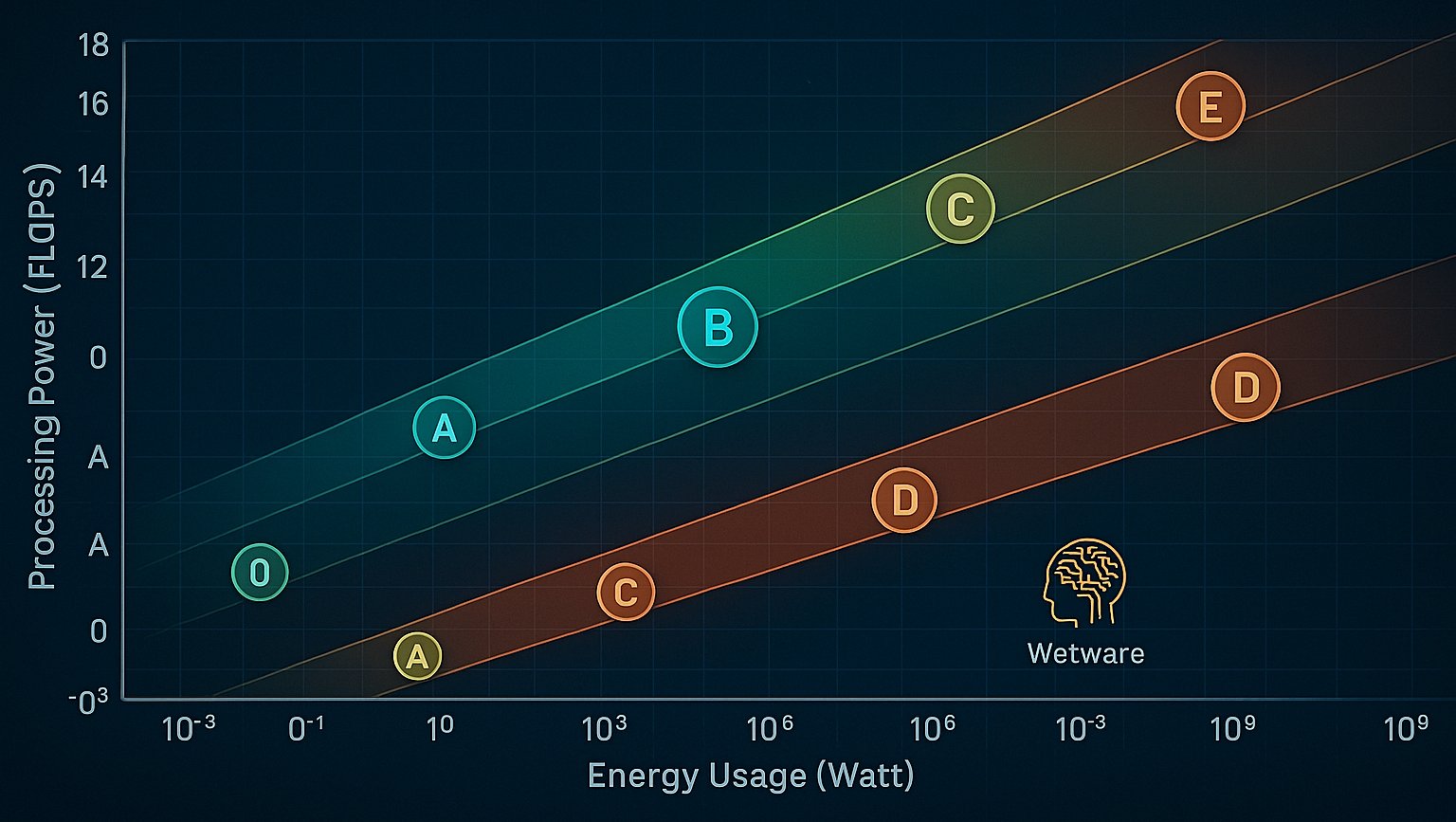 Geleneksel ölçekte enerji üretim miktarı ön plandayken, bu yeni yaklaşım bir medeniyetin bilgi işleme kapasitesini ne kadar verimli kullandığını temel alır. Bu ölçüt, özellikle yapay zekâ, nöromorfik ve biyolojik hesaplama sistemlerinin yaygınlaştığı günümüzde daha anlamlı hale gelmektedir.