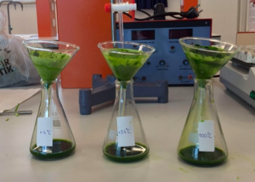 Her sıcaklık için 10 gr ıspanak kullanılmıştır.