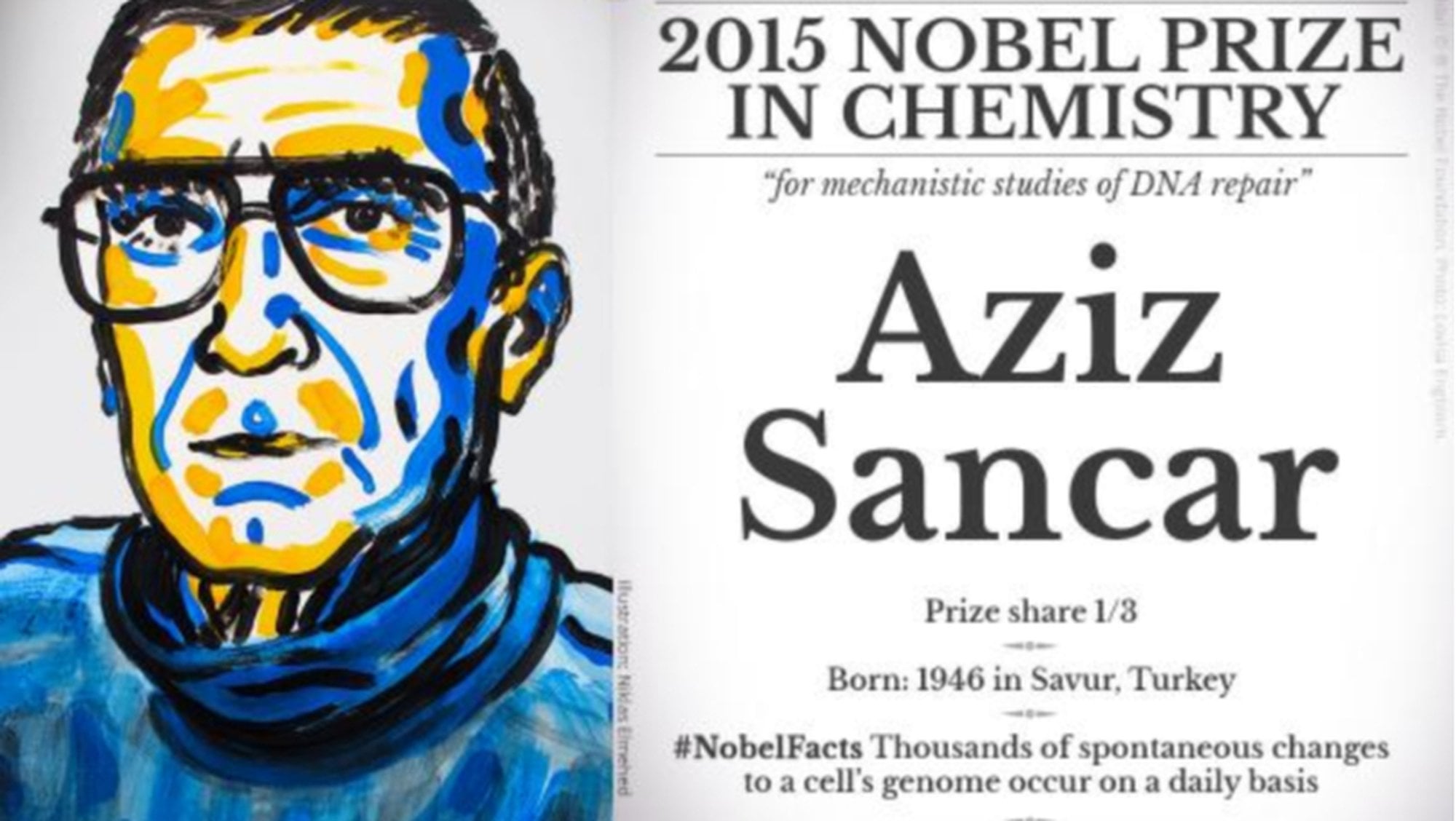 Bilim insanımız Aziz Sancar, UV ışınlarından zarar görmüş DNA’yı, fotolizazı onaran bir enzimin genini kopyalayabildi. Aynı zamanda enzimi daha fazla üretmek için bakterileri sağlamayı başardı. Yale Üniversitesinde, sigara dumanı, güneş ve diğer çevresel nedenlerden kaynaklı olan hasarları onarmak için önemli olan bir nükleotid eksizyon onarımını ortaya çıkardı. Bu geliştirdiği onarım sayesinde insanların çevresel streslerden uzak kaldığı sürece nasıl bir hayat sürebileceklerini açıklıyor. Aziz Sancar tarafından elde edilen bu bulgular daha iyi tedaviler geliştirmek için gerekli olan önemli temel bilgileri içerir.Bilimsel kariyerinde hızla gelişerek DNA onarımı alanında kendisini Nobel Ödülüne ulaştıracak olan yolda kararlı adımlar atarak ilerlemeye başladı. Ayrıca Aziz Sancar sadece DNA onarımı konusunda değil, biyolojik saat konusunda da dünyanın en iyilerinden birisi olmayı başarmıştır. 2015 Nobel Kimya Ödülünü DNA onarım mekanizmalarından olan ‘Nükelotid Koparmalı Onarım’ın mekanizmasını çözdüğü için almaya layık görüldü. Bir sürü farklı enzim ve proteinin yer aldığı bu onarım mekanizması doğru düzgün çalışmadığı zaman, insanlarda ‘Xeroderma Pigmentosum’adlı genetik bir hastalığı ortaya çıkarabilir. Bu hastalık Türkiyede akraba evliliklerinden doğan çocuklarda sık bir şekilde görülür.