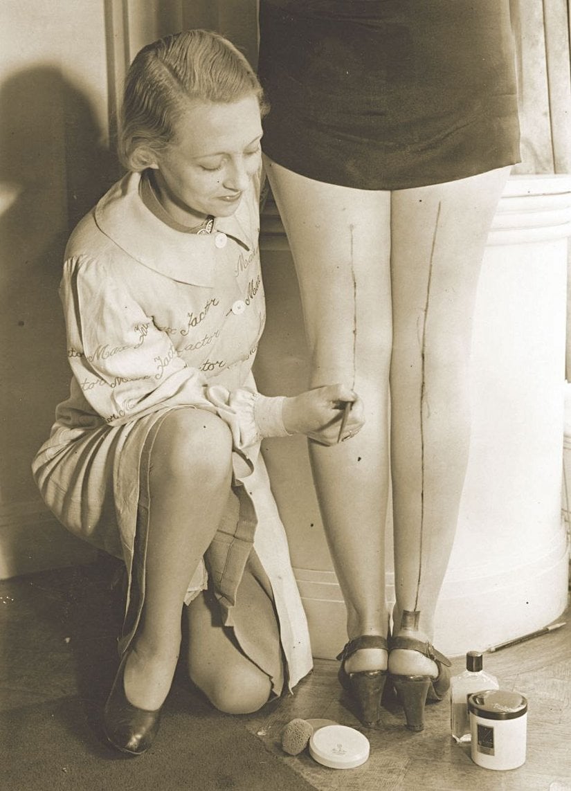 O illərdə qadınların evi çılpaq qıçlarla tərk etməsi ədəbsizlik sayılırdı. Heç olmasa neylon corab geyinməliydilər. Ancaq elə oldu ki, bu materialdan əla paraşütlər hazırlanmağa başlandı və corab qıtlığı yarandı. Aydındır ki, hərbi ehtiyaclar ön plana çıxmışdı. Bəs qadınlar çıxış yolunu nədə gördülər? Dəriyə tünd ton verən xüsusi kremlər satışa çıxdı və düz dəri üzərində həqiqi corablardaki xətlərə oxşar oxlar çəkdilər. Təbii ki, bütün bunları tüklü ayağa tətbiq etmək çətin olacaqdı. Nəticədə qızlar müntəzəm olaraq ayaqlarını qırxmağa başladılar. Və ənənə nəhayət bikinilər dəbə girəndə kök saldı. Bax belə, müharibə bu tip xırdalıqlarla belə həyatımızı əbədi olaraq dəyişdirdi.