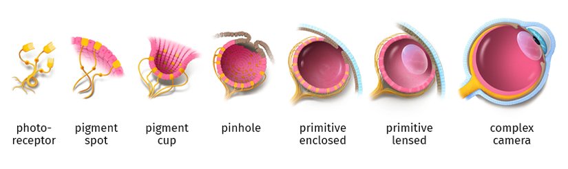 Adaptasyon, bir organizmanın çevresel koşullara uyum sağlamasını mümkün kılan genetik değişimlerin bir sonucudur. Adaptasyon süreçleri, genetik değişikliklerin zaman içinde birikmesiyle organizmanın karmaşık yapı ve sistemler geliştirmesine olanak tanır. Bu birikimli değişimlerin en belirgin örneklerinden biri, omurgalılardaki gözün evrimidir. Göz, basit bir ışık algılayıcı yapıdan başlayarak milyonlarca yıl boyunca seçilim baskıları altında gelişmiş ve modern omurgalılarda son derece karmaşık bir organ haline gelmiştir.[10]