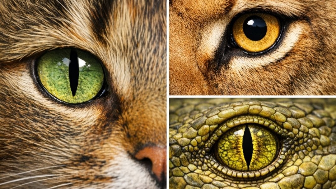 İlginç bir şekilde, bu dikey iris yapısı sürüngenlerde de görülür; yılanlar ve bazı kertenkeleler de aynı şekilde ışık kontrolünü optimize edebilir. Ancak kediler ve sürüngenler bu özelliği birbirinden bağımsız evrimsel süreçlerle kazanmıştır. Yani benzer göz yapısı, farklı canlı gruplarında benzer yaşam tarzlarına adaptasyonun bir sonucu olarak ortaya çıkmıştır.