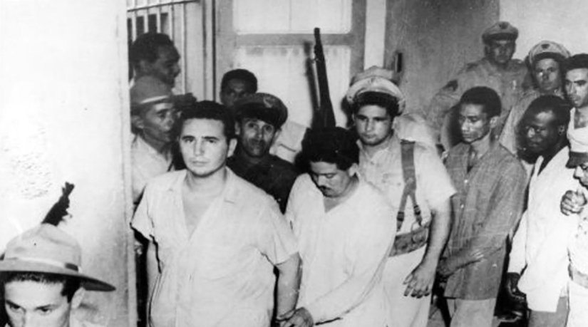 26 temmuz 1953 yılında Fidel Castro ve onun gibi düşünen bazı öğrenciler ilk silahlı direnişi başlatmışlar ve Moncada askeri kışlasına saldırı gerçekleştirmişlerdir. Bu ilk saldırı büyük bir başarısızlıkla sonuçlanmıştı. Fidel Castronun birçok arkadaşı burada can vermişti. Kalanlarda tutuklanıp hapise atıldılar. Fidel Castro ve kardeşi Raul Castro da tutuklananlar arasındaydı. Bu baskında yer alan Fidelin birçok arkadaşı öldürülmüştü. Hapse atılanların çoğu da adil olmayan yargılamalarla infaz edilmişlerdi. Ancak Fidel Castroyu yakalayan subay biraz insaflı birisiydi. Fidel ve Raul Castro kardeşler idam edilmediler, yargılandılar. İdam edilmemelerinin sebeplerinden biri de Fidelin kayınpederinin Batista'nın Bakanlarından birisi olmasıydı. Fidel avukat olduğu için kendi savunmasını kendisi yaptı ve orada tarihe geçecek olan şu sözleri söyleydi: "Beni mahkum edin, önemli değil tarih beni bağışlayacak". Fidel Castro 15 yıl hapis cezası almıştı.