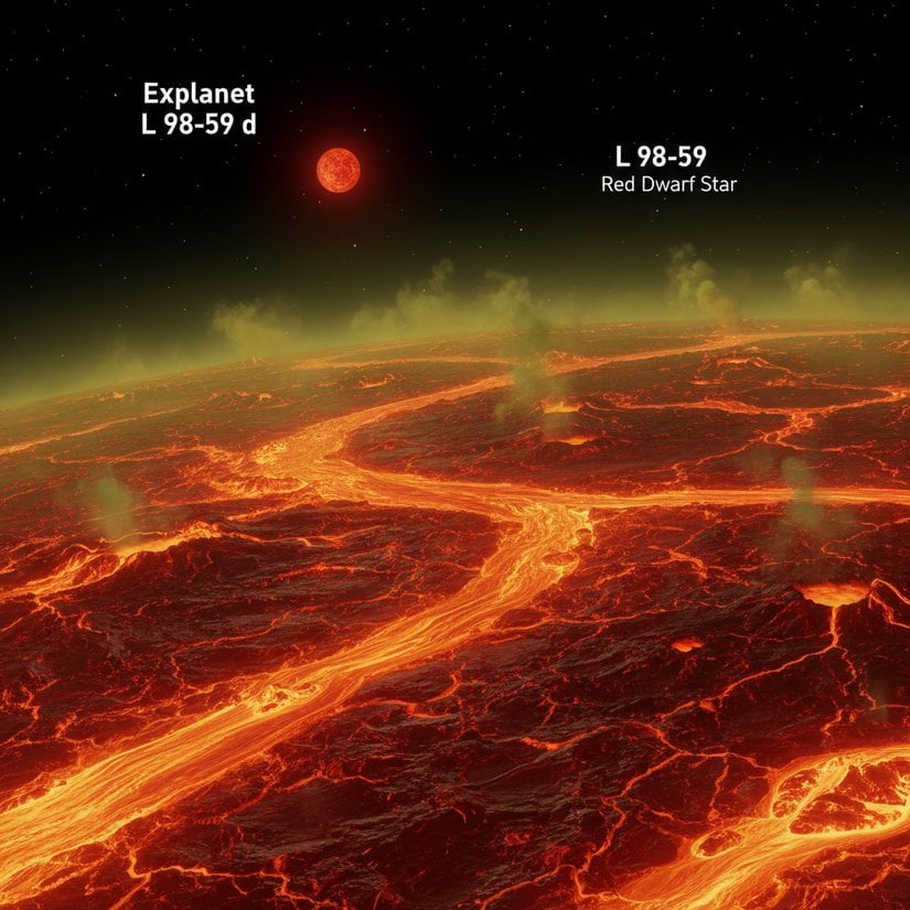 Evrenin derinliklerinde, Dünya'dan yaklaşık 34,59 ışık yılı uzaklıkta, Volans (Uçan Balık) takımyıldızının kalbinde bir "cehennem" saklı. L 98-59 d adıyla bilinen bu süper-Dünya, alışılagelmiş gezegen modellerini altüst eden ekstrem jeofiziksel özelliklere sahip. James Webb Uzay Teleskobu'nun (JWST) hassas gözlemleri sayesinde, bu gezegenin sadece sıcak bir kaya parçası değil, kükürt açısından zengin bir atmosfere sahip, sürekli fokurdayan devasa bir magma okyanusu olduğu anlaşıldı. Bu gezegeni anlamak, Dünya'nın milyarlarca yıl önceki erimiş bebeklik dönemine bir zaman makinesiyle bakmak gibidir.