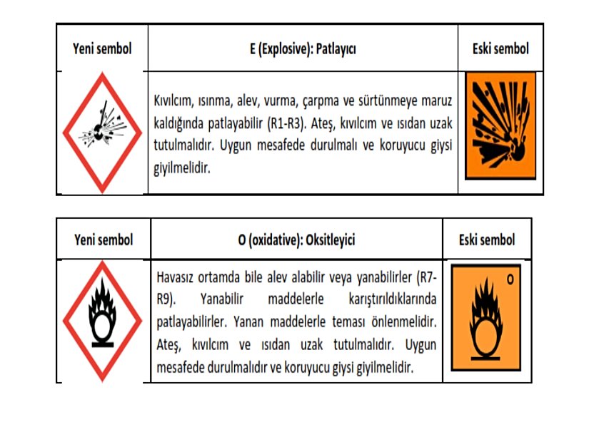 Kimyasallar gibi tehlikeli maddelerin etiketleri, tehlike işaretlerine ilaveten ayrıca bu kimyasalların getirdiği riskleri muhakkak göstermeli ve alınacak tedbirler hakkında bilgi vermelidir.