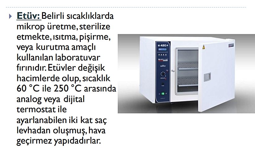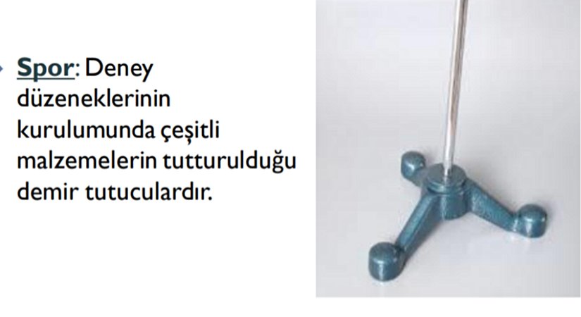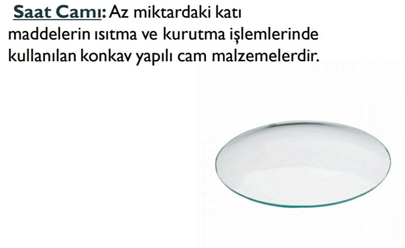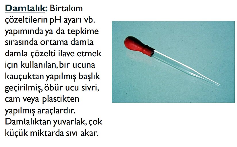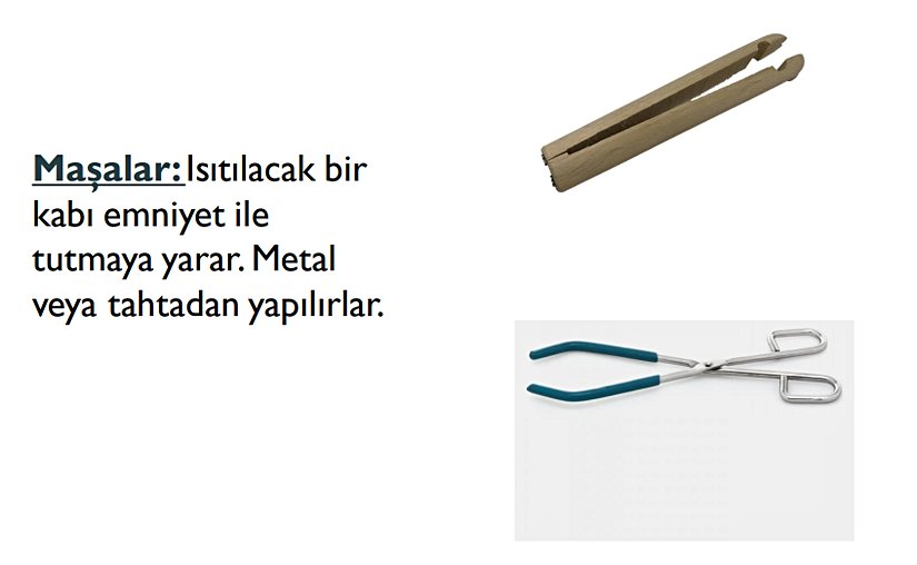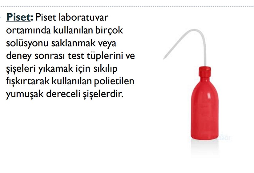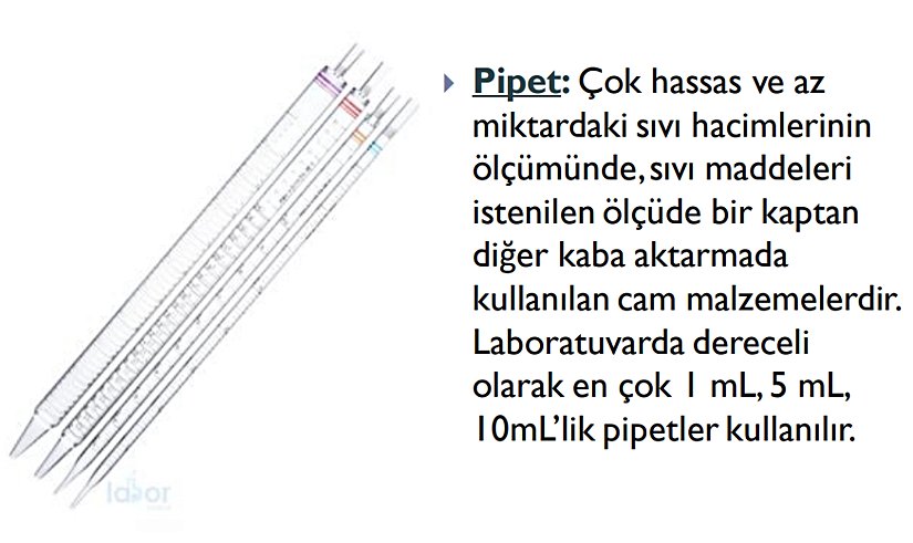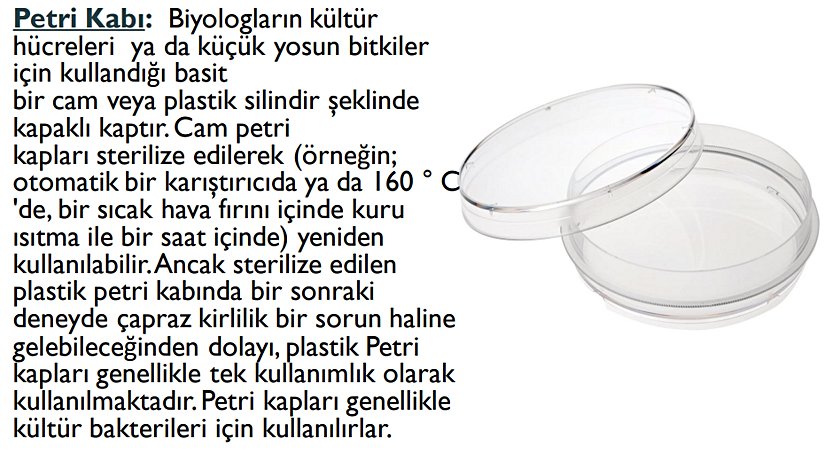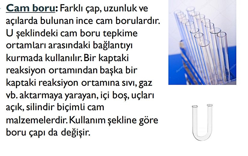 Laboratuarda; cam, porselen, kauçuk ve metallerden yapılmış bir çok malzeme kullanılır.