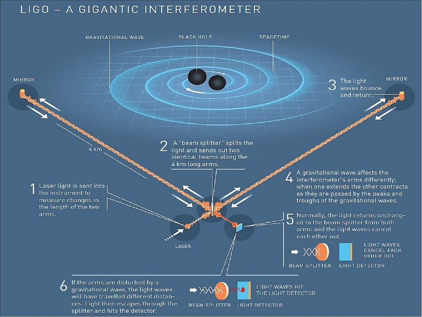 LIGO, Amerika Birleşik Devletleri’nin Hanford (Washington) ve Livingston (Louisiana) kentlerinde bulunan iki büyük ölçekli enterferometreden oluşur. Her bir tesiste, 4 kilometre uzunluğunda, dik açıyla yerleştirilmiş iki kol bulunmaktadır ve bu yapılar L şeklindedir. Bir lazer ışını ikiye ayrılır ve bu kollar boyunca gönderilir; ışınlar aynalardan yansıyıp başlangıç noktasına geri döner. Eğer bir kütleçekim dalgası sistemden geçerse, kolların uzunluğunda çok küçük bir fark oluşur ve bu fark, ışınlar birleştiğinde ölçülebilir bir enterferans deseniyle kendini gösterir.