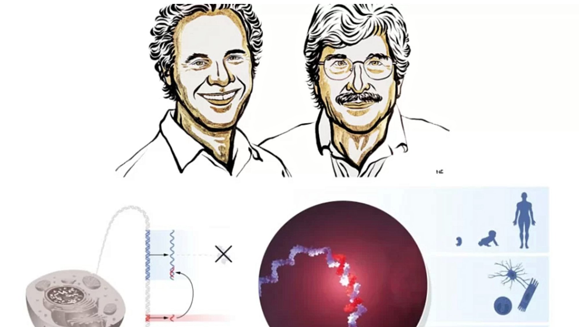 Victor Ambros ve Gary Ruvkun, 1980'lerin sonlarında 2002 Nobel Ödülü sahibi Robert Horvitz'in laboratuvarında yaptıkları doktora sonrası çalışmalarında Caenorhabditis elegans adlı model organizma üstünde çalıştı. C. elegans, bir yuvarlak soluncan türüdür; boyutu ve karmaşık canlılarda da bulunsn sinir ve kas hücreleri gibi özelleşmiş pek çok hücre tipine sahiptir. Bu sebepten dolayı da çok hücreli canlılarda dokuların nasıl gelişip olgunlaştıklarını araştırmak için çok uygun bir model organizmadır. C. elegans'ın gelişimleri sırasında genetik programlarının etkinleşme zamanlamasında bozukluk sergileyen lin-4 ve lin-14 adlı iki mutant C. elegans soyunu incelenmekteydi. Daha önce lin-4 geninin lin-14 geni üzerinde negatif bir düzenleyici (genin etkinliğini bloke eden) olduğunu göstermişti. Ancak lin-14 'ün etkinliğinin nasıl bloke olduğu bilinmiyordu. Deneylerayrıca lin-14 genindeki belirli bir parçanın bu genin lin-4 tarafından bloke edilmesi için gerekli olduğunu gösteriyordu. Kısa lin dizisi yani lin-4, lin-14 mRNA'sı üzerindeki kritik bölgede bulunan tamamlayıcı bir dizi ile eşleşiyordu. Lin-4 mikroRNA'sının lin-14 genin, lin-14'ten üretilen mRNA'daki tamamlayıcı dizilere bağlanmak suretiyle bloke ettiği deneyler ile kanıtlandı.[2]
