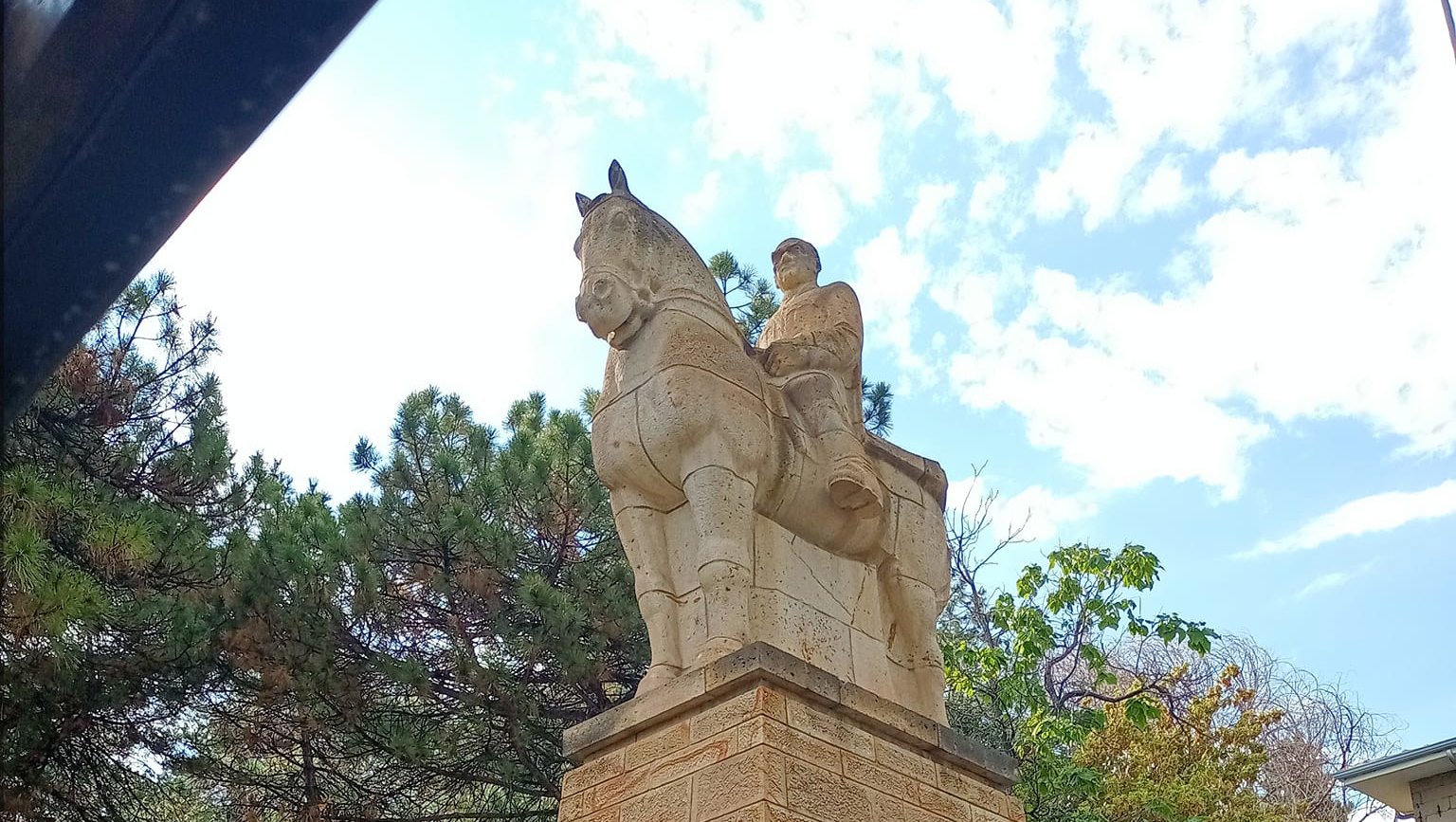 📌Yüksek taş kaide ve yine taşla yapılmış olan at üzerindeki Atatürk, bir bütünün iki