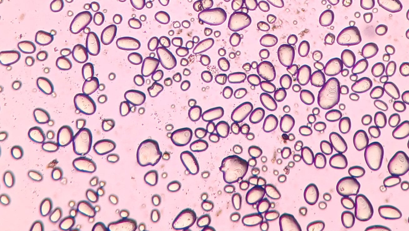 Şekil 1'de görmüş olduğunuz Nişasta, patates nişastasıdır. Patates nişastası, genellikle elipsoid, konkoid, nadir olarak ise küre biçiminde karşımıza çıkar.