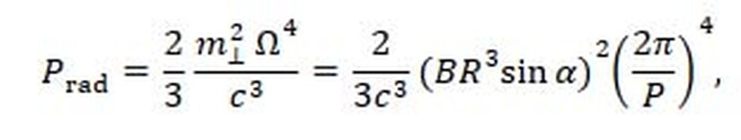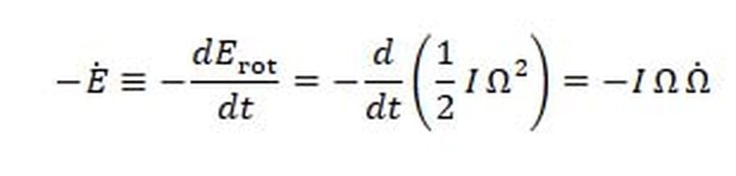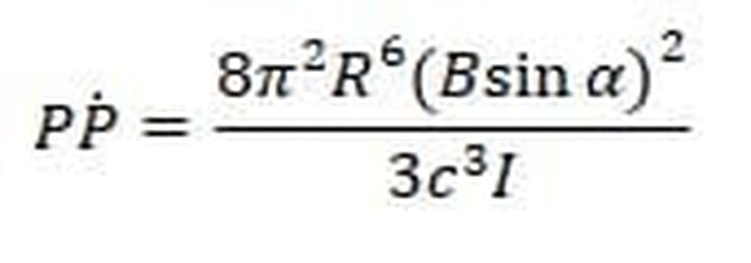 olur. Burada P pulsarın periyodudur. Bu elektromanyetik radyasyon çok düşük radyo dalgası bölgesinde yayınlanacaktır, öyle düşüktür ki etrafını kaplayan iyonize olmuş bulutsudan veya yıldızlararası maddeden geçemez. Fakat manyetik dipol radyasyonu, dönme kinetik enerjisini nötron yıldızından dışarı çıkararak, pulsarın periyodunun artmasına (dönüşünün yavaşlamasına) neden olacaktır.