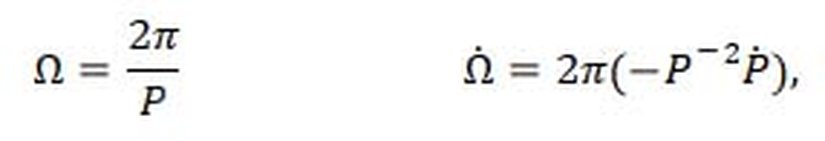 'nin birimsiz olduğuna dikkat ediniz (birim saniyedeki saniyece değişim). Yani sadece bir sayıdır. Gözlenen periyot P ve periyodun türevi