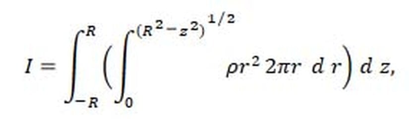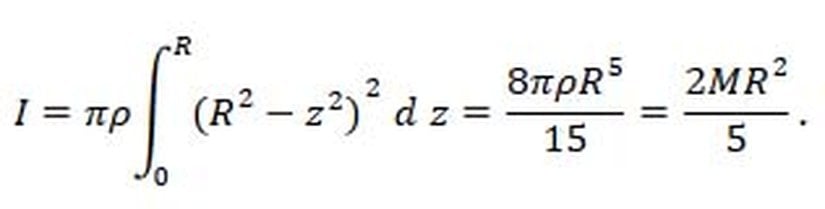 R yarıçaplı, M kütleli, uniform yoğunluk dağılımına sahip z-ekseni etrafında dönen bir kürenin eylemsizlik momenti, kütle elementleri üzerinden toplam alınarak hesaplanabilir: