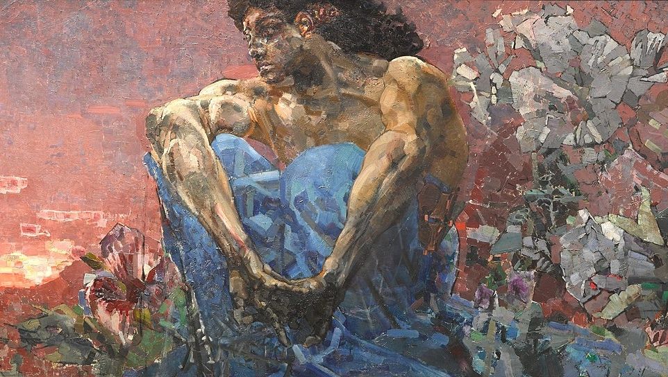 Renkler yalnızca figürün etrafında değil, figürün içinden taşar. Sanki beden bir renk alanına dönüşmüştür. Vrubel burada yalnızca dışsal bir formu değil, ruhun içsel titreşimlerini boyar. Bu yüzden tabloya bakıldığında renkler bir dekor değil, bir duygu atmosferi gibi hissedilir. Göz, figürün yüzüne takılıp kalmaz; mor ve mavilerin içine doğru çekilir.