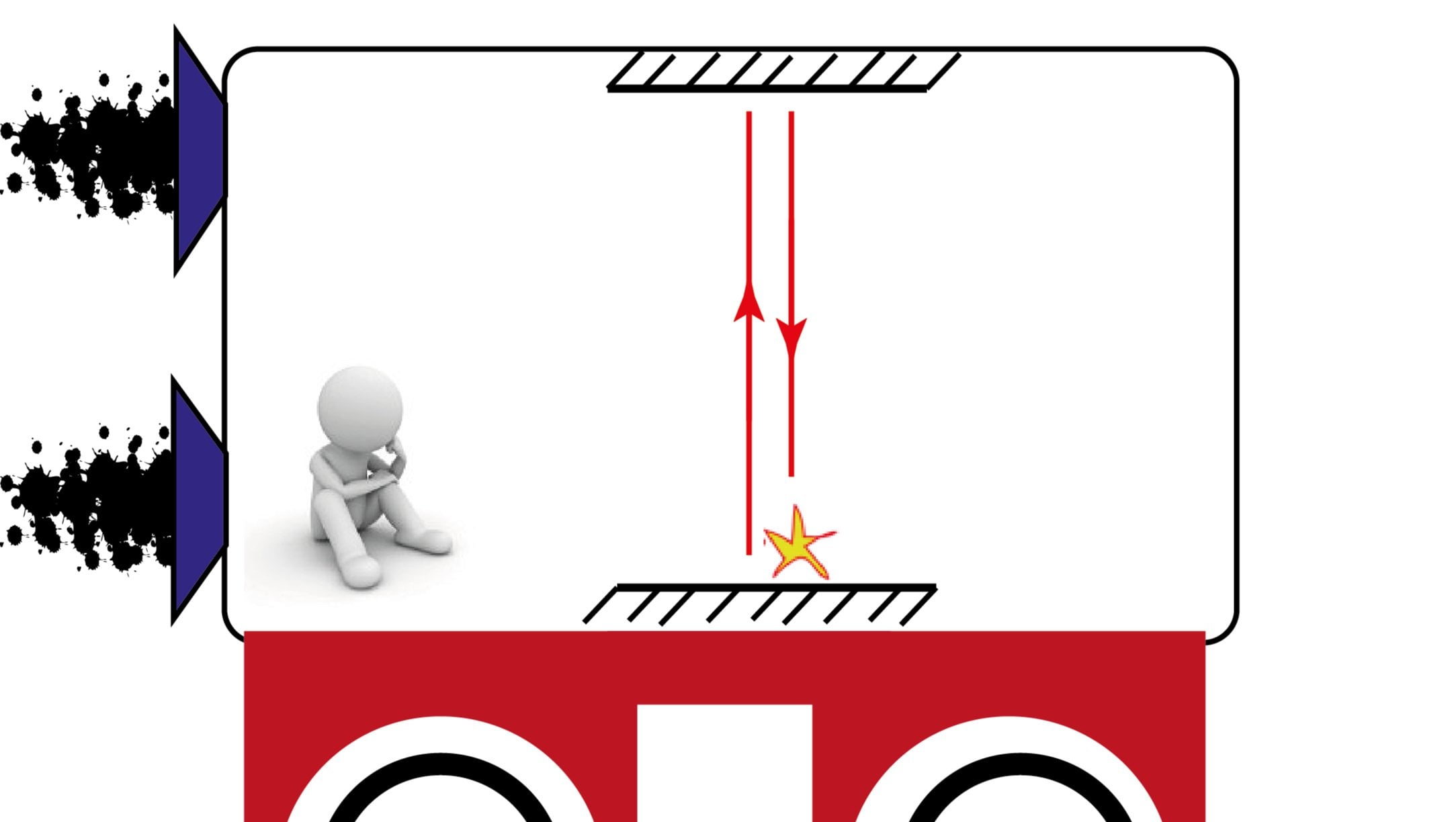 Aliye göre ışık bir alttan bir üst aynaya doğru gidip gelir yani hız koordinatları bölümünde anlattığımız gibi ali onu yukarı gidiyor görür(Y ekseninde) ancak siz dışarıda duran biri olarak daha farklı görürsünüz çünkü otobüs doğuya doğru yani X eksenindede gidiyor görürsünüz yani ışığın hem y hem de x ekseninde hızı olduğu için hız koordinatları bölümündeki top gibi çapraz gidiyor görürdünüz