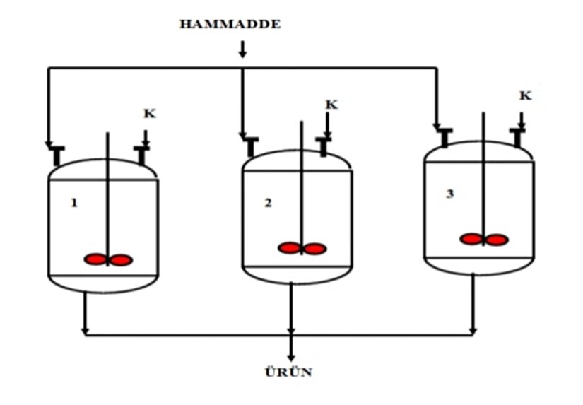 2. Paralel Bağlı Reaktörler: Paralel bağlı Reaktörlerde reaksiyon aynı anda Gerçekleşir. En önemli avantajı kapasite artırımıdır.