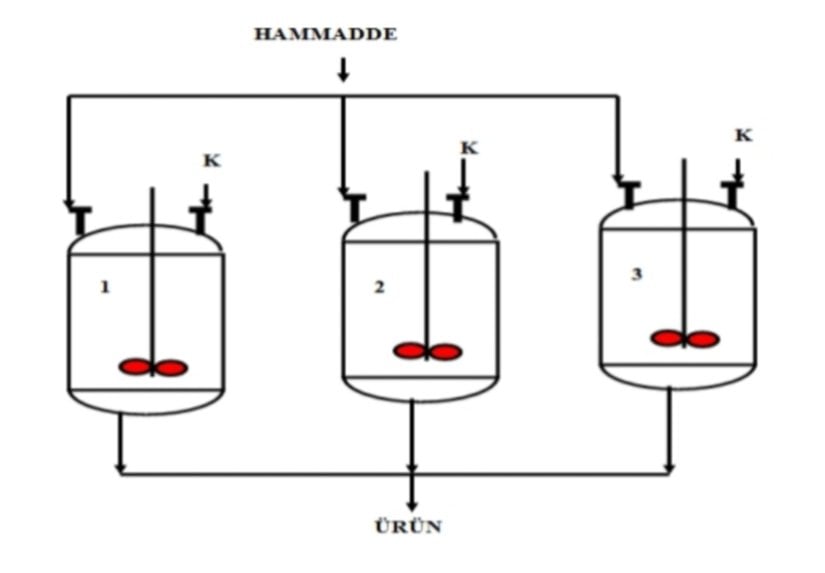 2. Paralel Bağlı Reaktörler: Paralel bağlı Reaktörlerde reaksiyon aynı anda Gerçekleşir. En önemli avantajı kapasite artırımıdır.