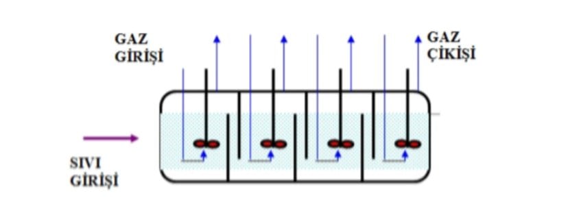 3. Karışık fazlı reaktörler (Gaz + Sıvı ): Reaksiyon gaz ve sıvı fazında gerçekleşir.