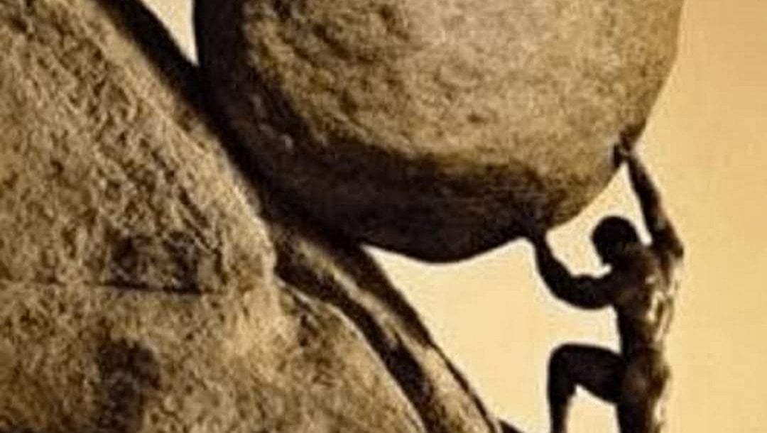 Sisifos tanrılar tarafından koca bir kayayı her gün bir dağın tepesine çıkarmakla cezalandırılır ve tepeye her çıkardığında kaya aşağılara yuvarlanır. Tanrılar yararsız ve umutsuz çabadan daha korkunç bir ceza olmadığını düşündüler.