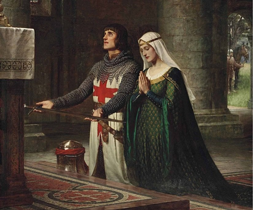Dini inancın yanında bir kadına, elbette soylu bir kadına duyduğu aşkla ruhunu tamamlar. Savaşlarda bu aşk onu motive edip, Turnuvaları aşık olduğu leydi için kazanır(tabi bunun yanında para ödülü ve rakibinin silahlarını ve zırhını almak da vardır). Aşık olmanın şövalyelikle ilgisine bir örnek vermek yerinde olacaktır;