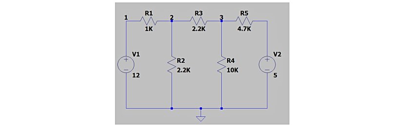 Örnek: Aşağıdaki devrede V gerilimi değerini süperposizyon yöntemi kullanarak bulalım.