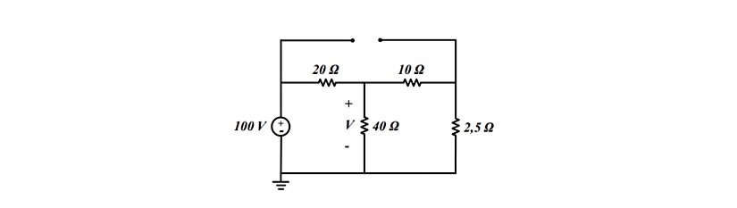 (V1=100V, I1=6A, R1=20 Ω, R2=10 Ω, R3=40 Ω,R4=2.5 Ω)