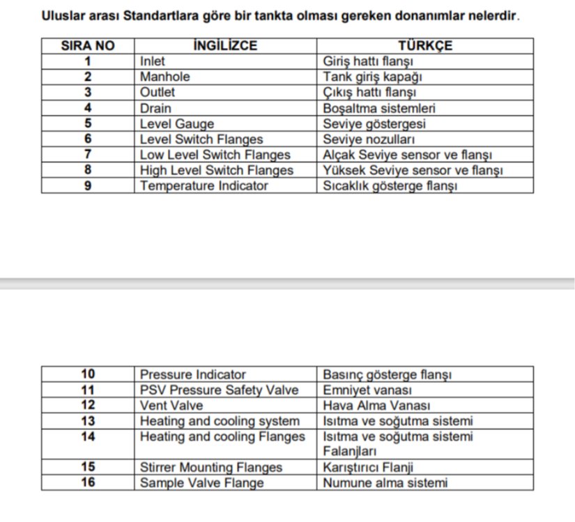 TANKLARIN İMALATINDA KULLANILAN STANDARTLARI