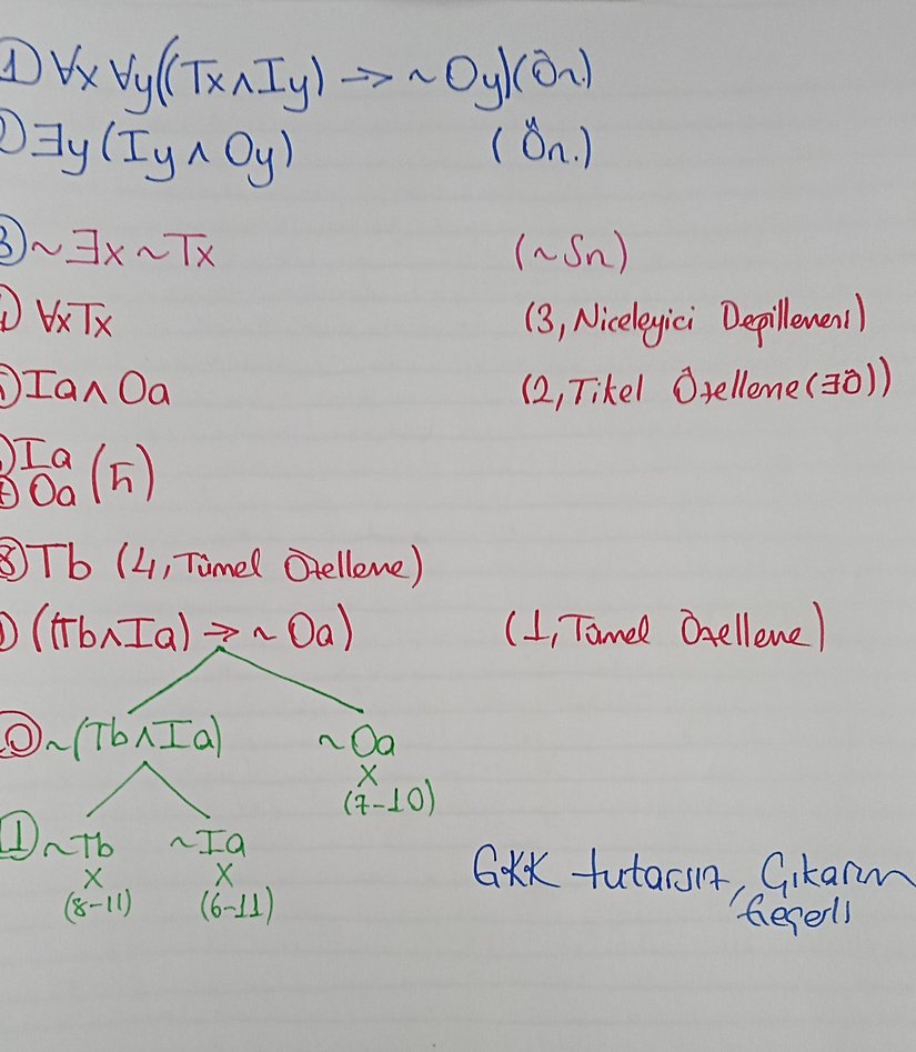 2.Başlangıçta verilen mantıksal çıkarımın geçerliliğini gösteren tablo: