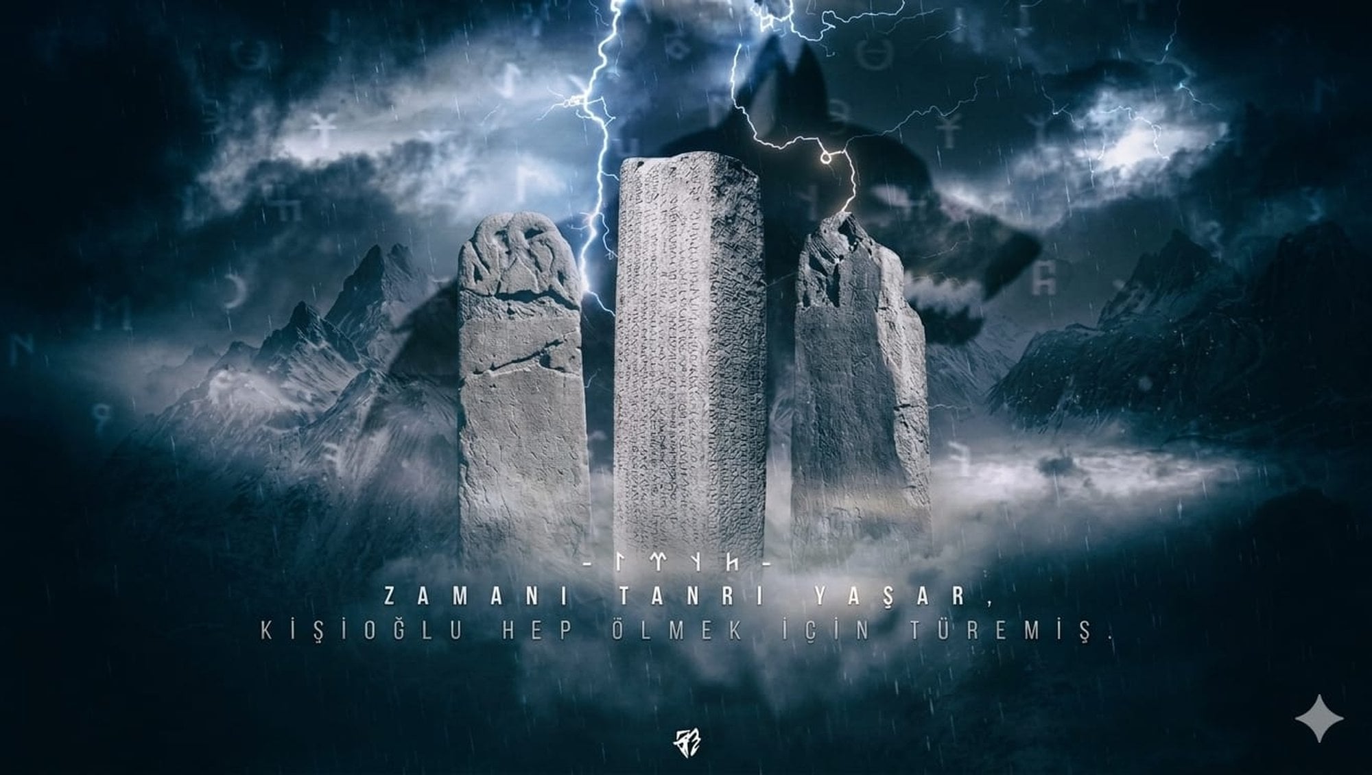 "Tengri teg tengriden bolmış Türük Bilge Kagan..." (Tanrı gibi gökte olmuş Türk Bilge Kağan...)