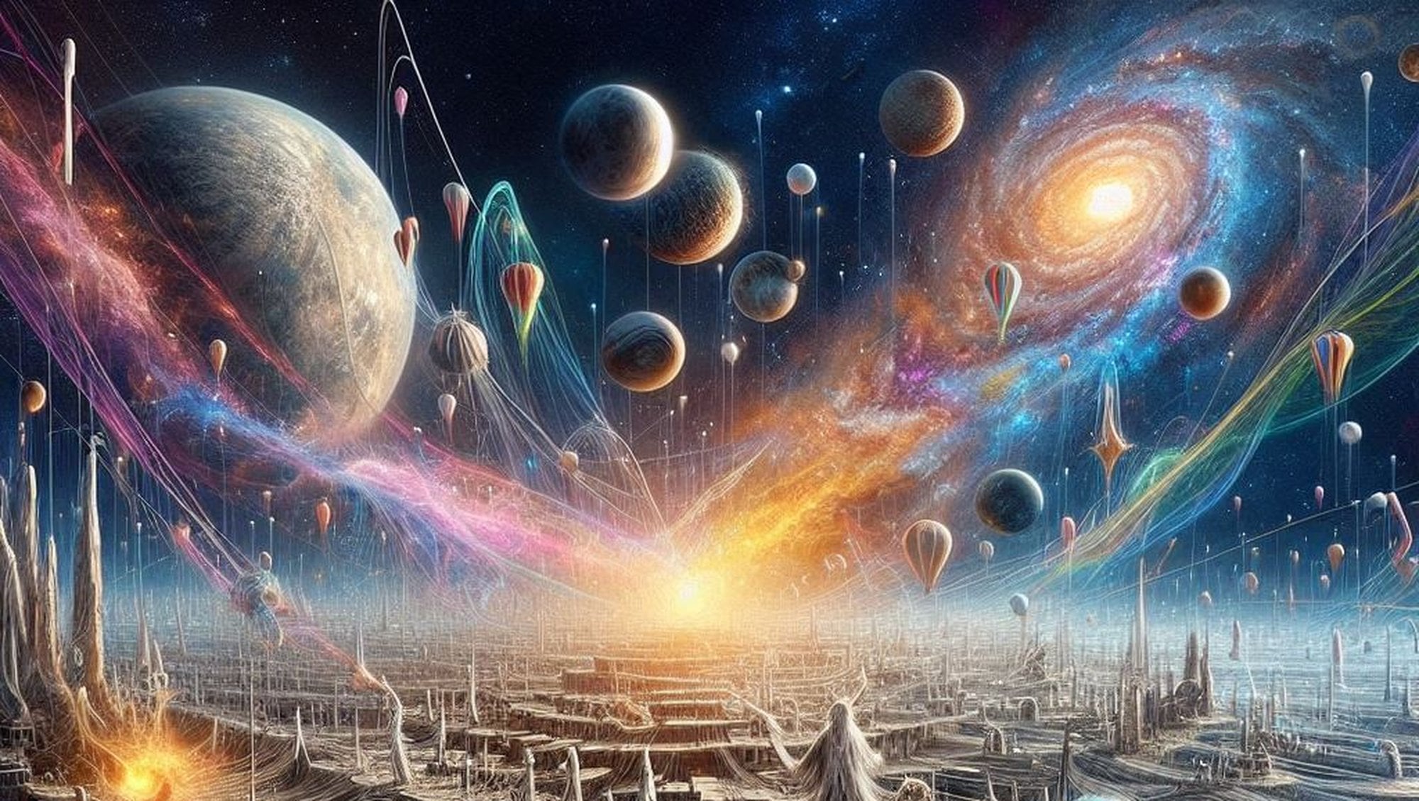 Ve perde kapandı… ya da kapanmadı mı? Evren, 13,8 milyar yıllık ömründe hâlâ fısıldıyor, sonsuzluğa uzanan bir şarkıyla. İlk yıldızlar patladı, ağır elementler galaksilere saçıldı. Protoplanet diski gezegenleri yoğurdu, Dünya ne çok sıcak ne çok soğuk bir köşede şekillendi. Samanyolu, Andromeda’ya mektup yazdı, karanlık madde yolları çizdi, karanlık enerji sahneyi genişletti. Her karakter, bir hayal bıraktı: bir galaksi, bir gezegen, belki bir gün bir yaprak.