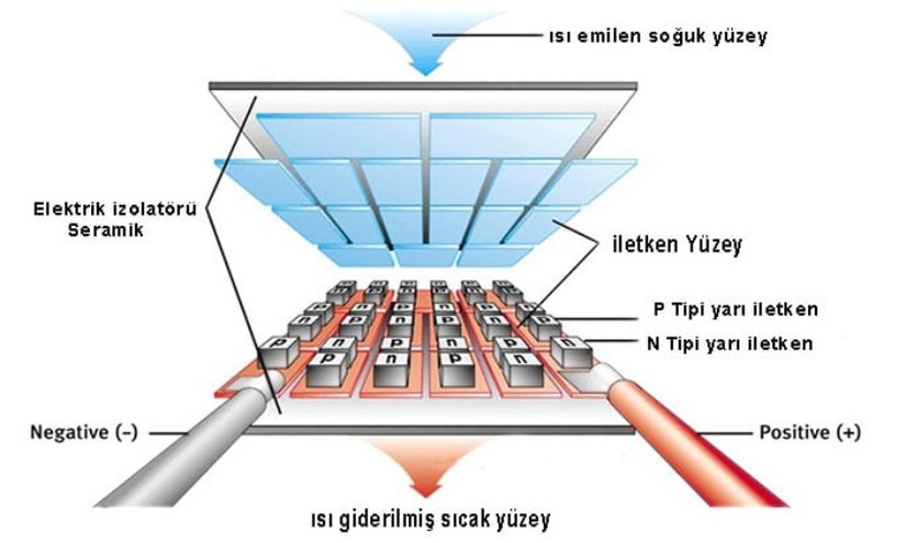 Termoelektrik jeneratörleri yani peltier plakaları hali hazırda var olan bir teknolojidir. Peltier plaklarına doğru akım verildiğinde N ve P olarak ifade edilen iki yarı iletken madde elektronları sıcak tarafa doğru iter böylece ISI soğuk taraftan sıcak tarafa hareket etmiş olur. Bu durum bir tarafın soğumasını diğer tarafın ise ısınması sağlanır. Ayrıca iki yüzünde de doğru sıcaklık farkı oluşturulmasıyla beraber elektrik üretilebilir.