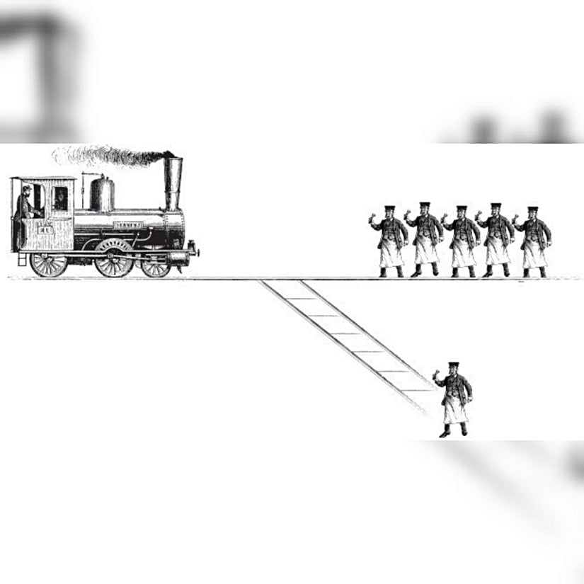 Bir tramvay hattının yanında durduğunuzu hayal edin. Uzaktan, geldiğini duymayan beş işçiye doğru hızla gelen kontrolden çıkmış bir tramvay görüyorsunuz. İşçiler tramvayı görseler bile zamanında hattan uzaklaşamayacaklar...