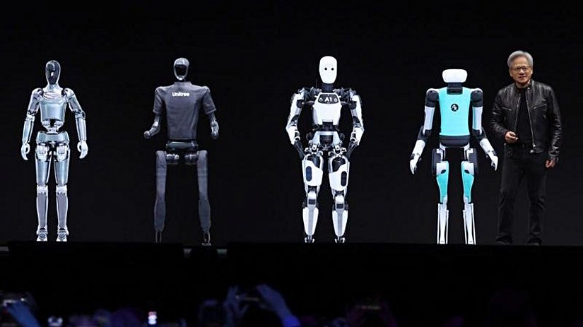 Huang was accompanied by robots on stage while introducing a series of new chips to be used in the construction of humanoid robots.