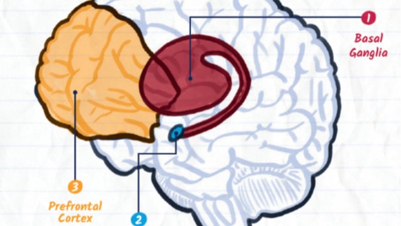 Uyuşturucular, yaşamı sürdüren işlevler için gerekli olan önemli beyin alanlarını değiştirebilir ve bağımlılığa yol açabilir. Yemek yeme, sosyalleşme, seks gibi sağlıklı aktivitelerin keyif verici etkileri de dahil olmak üzere pozitif motivasyon biçimlerinde önemli rol oynayan bazal ganglionlar, aynı zamanda alışkanlıkların ve rutinlerin oluşmasında da rol oynuyor. Bu alanlar bazen beynin "ödül devresi" olarak adlandırılan şeyin anahtar düğümünü oluşturur. İlaçlar bu devreyi aşırı aktive ederek ilacın verdiği mutluluk hissini artırır. Ancak tekrar tekrar maruz kalındığında devre ilacın varlığına uyum sağlayarak duyarlılığını azaltır ve ilaç dışında herhangi bir şeyden zevk almayı zorlaştırır.