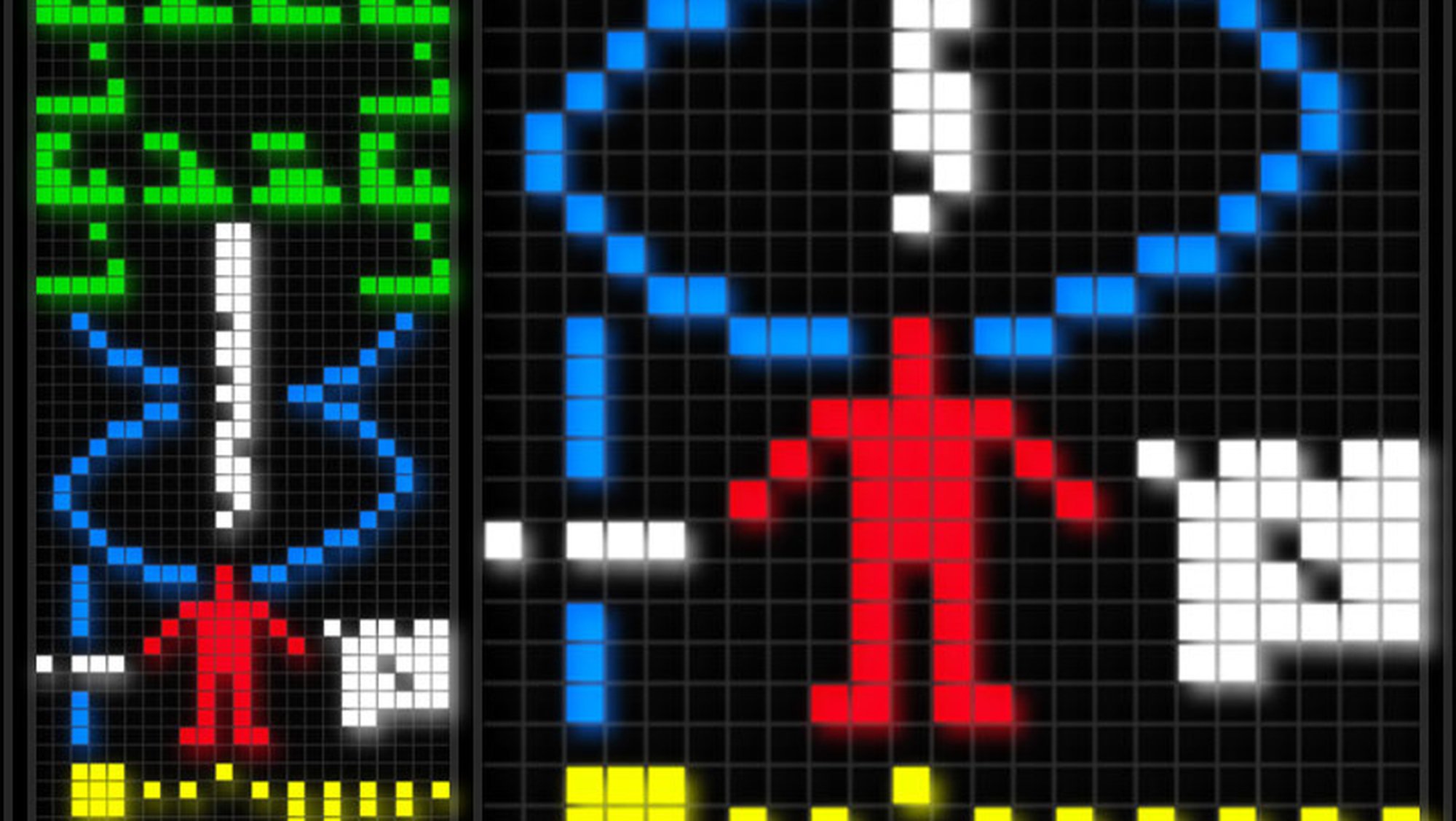 Bu yapının hemen altında (kırmızı) insan figürü görülmektedir. Bu insan figürünün sol tarafında, Dünya’da yaşayan insan sayısı, sağ tarafta ise gönderilen radyo mesajının dalgaboyu uzunluğu yer almaktadır. Bundan sonraki satırda (sarı), Güneş sisteminin şematik bir durumu görülmekte, Güneş’ten sonraki yukarı doğru yönlenmiş üçüncü gezegenin Dünya olduğu ve bu gezgenden radyo mesajının gönderildiği vurgulanmaktadır. En altında ise (mor), bir noktaya odaklanmış radyo teleskobun bir gösterimi ve bunun altında ise (beyaz) radyo teleskobun çapını gösteren sayısal bir ifade yer almaktadır.