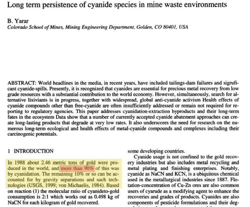 There is an interesting detail about this: In fact, there are a number of methods that have been developed both to quickly separate the cyanide from the process and to make it safe. For example, it is possible to convert cyanide to a less toxic cyanide through a process called detoxification. In their articles published in Minerals Engineering in 2013, Nural Kuyucak and Ata Akçıl talk about dozens of methods for cleaning cyanide. Or in an article published in Nature in 2013, experts announced that they had discovered a method of gold separation using corn starch, so cyanide is not even needed. However, none of these are used commercially or extensively, both for cost reasons and because there is no significant public pressure in this respect.
