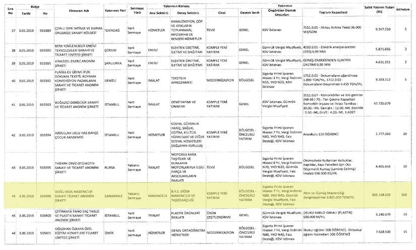 Official GazetteBy way of comparison, Turkey's gross annual receipts was $ 766 billion in 2018; only Çanakkale's annual agricultural output in 2009 alone amounted to $ 1.3 billion. The total employment that the company will create in Çanakkale is 300 people. On the other hand, a textile company in Denizli, which received 74 million TL incentives in the same Official Gazette, will create employment for 307 people. Is it worth it?