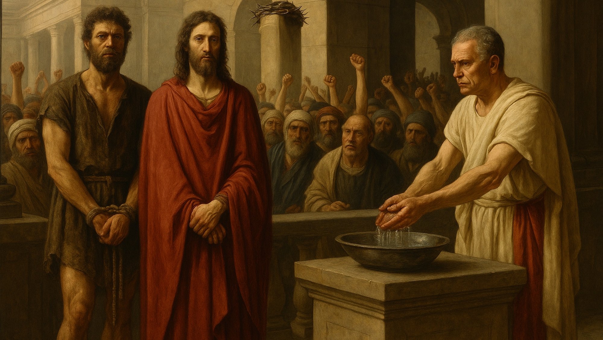 • Hristiyanlık'a göre Roma Valisi Pilatus, İsa yargılanırken halkı yatıştırmak için Fısıh Bayramı'nda bir tutukluyu serbest bırakmak ister ve halkın önüne iki isim çıkar. Yahudilerin Kralı İsa ve Katil Barabbas.