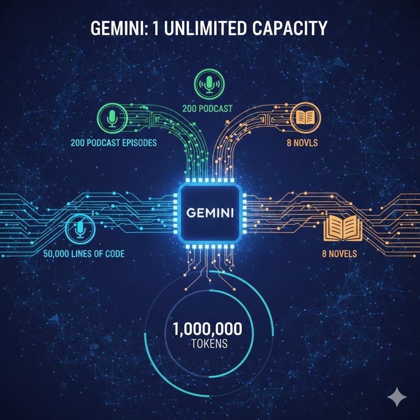 - Yani bu şu demek oluyor: Gemini'a tek bir seferde binlerce sayfalık bir teknik dokümanı, saatlerce süren bir video kaydını veya on binlerce satırlık bir kod kütüphanesini yükleyebilirsiniz. Gemini, bu verinin içindeki iğne ucu kadar küçük bir detayı bile saniyeler içinde bulup analiz edebilir.