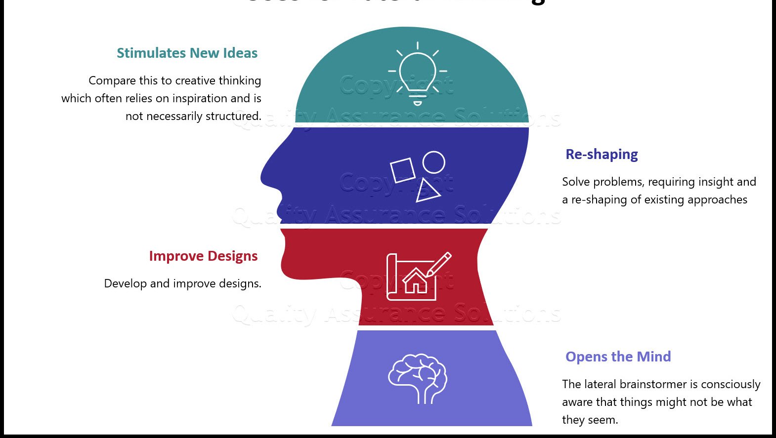 Yanal düşünme, farklı ve ilginç yollarla düşünmemize yardımcı olur. Bu, birazcık düşünme oyunları oynamak gibi. Bu sayede, karşımıza çıkan zor durumları daha kolay ve eğlenceli bir şekilde çözebiliriz. Ayrıca, bu düşünme şekli sayesinde insanlar daha yaratıcı ve akıllıca fikirler üretebilirler.