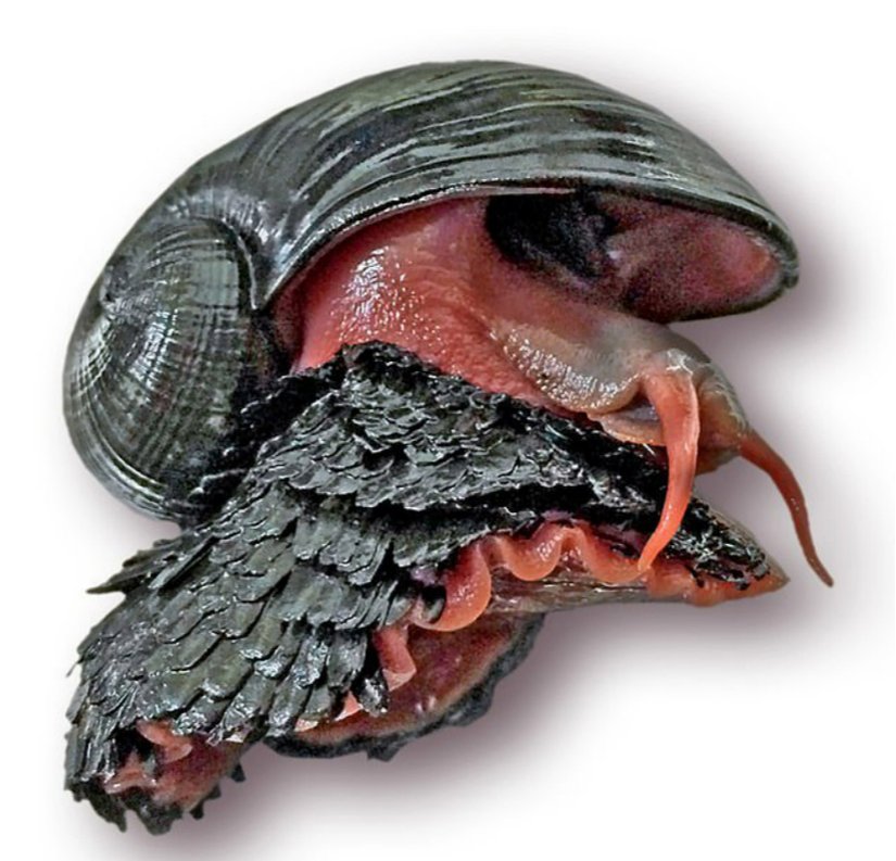 Volkan Salyangozu kendisini 750* derece sıcaklığa varabilen ve Hint Okyanusunun 2 kilometre altında bulunan hidrotermal bacalarına göre adapte etmiş Extrem bir canlıdır. Diğer hiçbir hayvanın yapısında kullanamadığı mineralize demir sülfatı kabuğunun 3 katmanlı yapısının en dışında koruyucu bir tabaka olarak kullanmaktadır. Bu sayede ekstrem sıcaklık ve basınca karşı direnebilir.