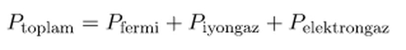 Küçük ve soğuk gaz küreleri için toplam basınç, yukarıdaki şekilde üç ayrı basıncın toplamı olarak ifade edilir.