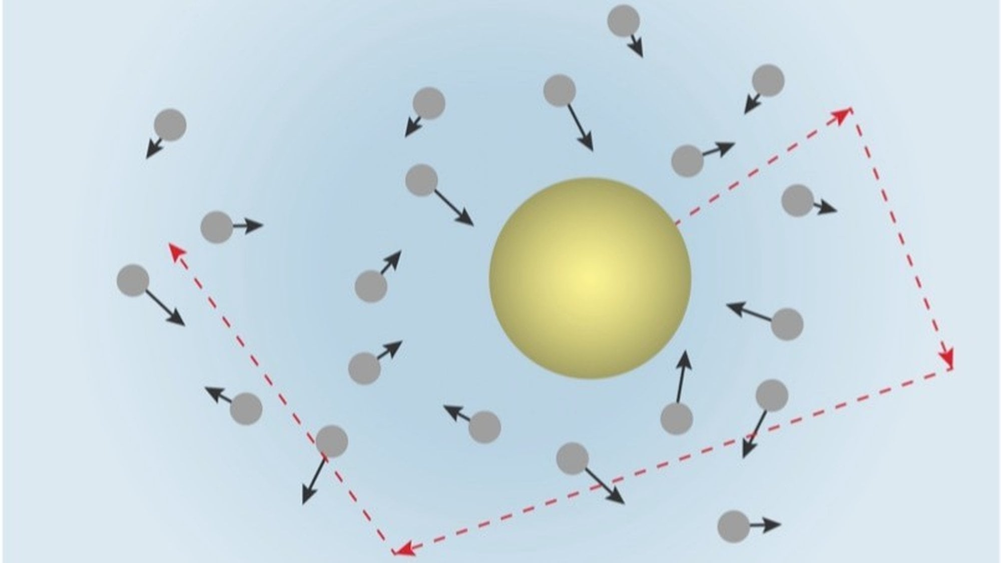 Bu olay için bir analoji kuracak olursak; kendinizi kalabalık bir insan grubunun içinde yürümeye çalışan biri olarak düşünün. Bazı anlarda kendimizi sıkışmış ve bir çok insan tarafından itilirken buluruz ama bazen bir yolunu bulup yürümeye devam ederiz. Hareketimizi daha çok etrafımızdaki kalabalık belirler ve yönlendirir. Brown hareketinde de buna benzer bir durum yaşanmaktadır.