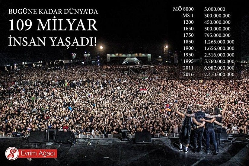 - Dünya üzerinde bugüne kadar yaklaşık 109 milyar insan yaşamıştır ve günümüzde yaşayan 7,5 milyar insan, toplamın sadece %7'sini oluşturur.
