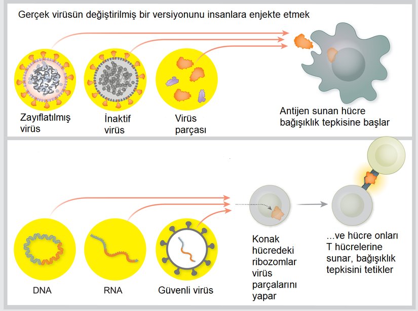 Bu üçü, mızrak proteini gibi virüsün genlerini haritalamayı ve DNA, RNA veya güvenli bir virüse sokmayı ve insanlara enjekte etmeyi içeriyor.