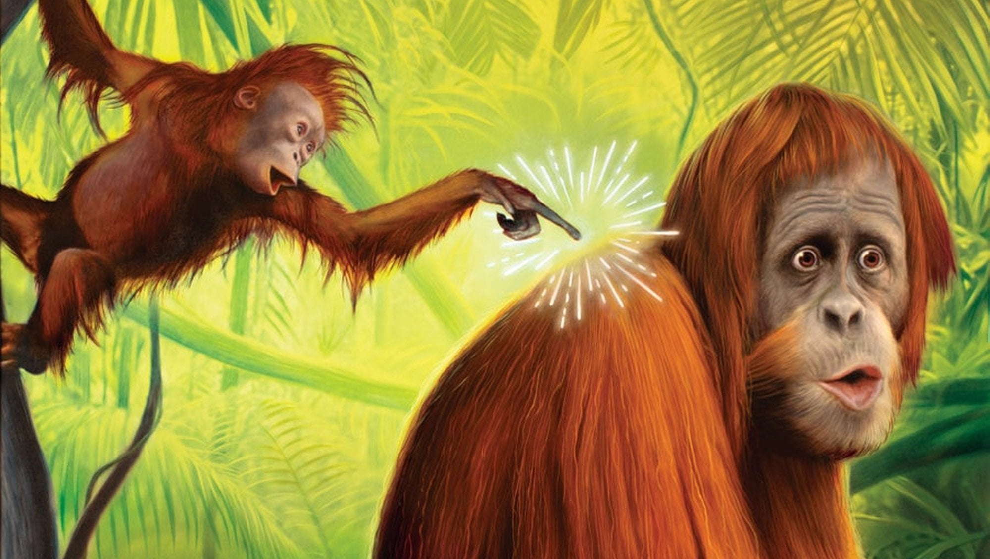 Orangutanlar ve insanlar; şempanzeler, bonobolar ve gorillerle birlikte büyük insansı maymunlar grubuna dahildir. Bu grubun üyelerinin birçok ortak özelliği var. Mesela hepimizin büyük beyinleri var ve uzun çocukluk dönemleri yaşıyoruz. Gülüyor, yas tutuyor, kıskanıyor ve kin tutabiliyoruz. Aynadaki yansımamızı tanıyoruz ve başkalarının bizim bilmediğimiz şeyleri bilebileceğini anlıyoruz. Özetle, büyük insansı maymunların gelişmiş bir sosyal zekâsı var: Diğer bireylerle çok ilgileniriz ve onlarla oyun oynayarak, öğrenerek, tartışarak, intikam alarak ve dostluklar kurarak oldukça zaman geçiririz. Peki bu şakalaşma davranışı, başkalarının hedeflerine, duygularına ve ilişkilerine duyulan bu yoğun ilginin bir parçası olarak mı evrildi?