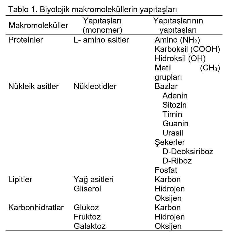 Prebiyotik ortamda ilk yapıtaşları (monomer) oluştuktan sonra bunların boncuk kolyedeki gibi birbirine bağlanması yani polimerizasyonu ile protein, nükleik asit gibi makromoleküllerin oluşması gereklidir (Tablo 1). Bu aşama, prebiyotik evrimin en zor ve en az bilinenen süreçlerinden biri olarak kabul edilir.
