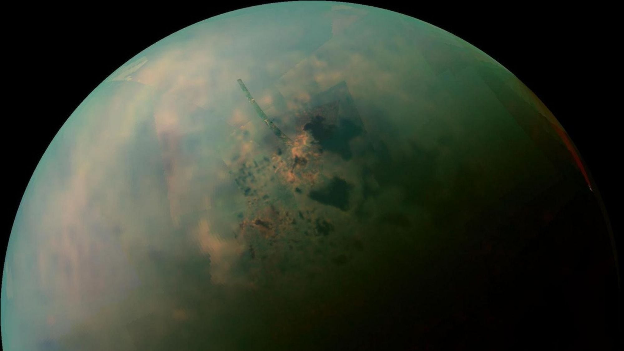 Bu son fotoğraf, ikisinin bir bileşimi gibi... Titan'ın gölleri ve denizleri, uydunun kuzey kutup bölgesinde bulunuyor. Bu nedenle, uzun kış boyunca buraya hiç Güneş ışığı ulaşamıyor. Böyle bir fotoğrafı yakalayabilmek için Cassini'nin doğru zamanda, doğru yerde ve doğru açıda bulunması gerekiyor.