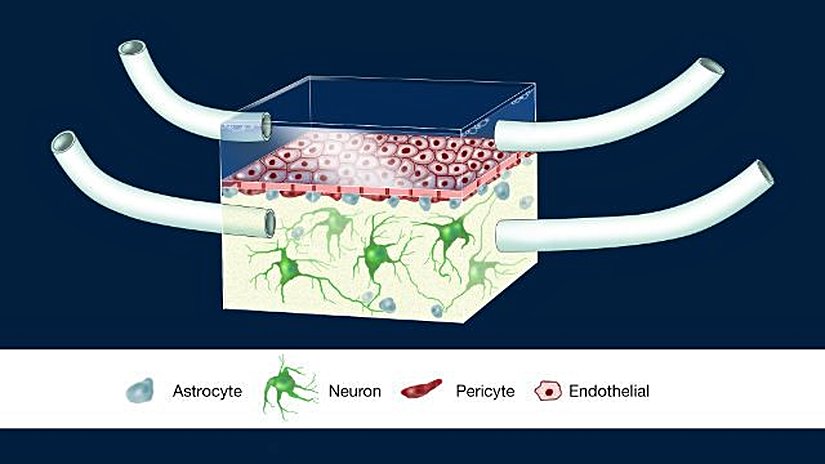 Beynin tümünden ziyade sadece en küçük işlevsel birimini yeniden yaratmaya çalışıyoruz. Mesela bu örnekte, oldukça özgün bir şekilde birbiriyle etkileşim kuran ve yine oldukça özgün bir şekilde dizilmesi gereken mikro-damarsal endotel hücreleri, nöronlar, astrositler ve perisitlerden oluşan kan-beyin bariyerini aldık. Çip içinde, çok küçük bir ölçekte, tekrar yarattığımız şey işte budur.