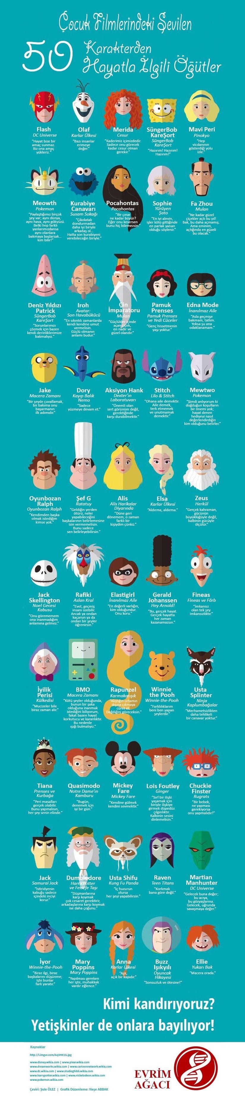 Çocuk Filmlerindeki Sevilen 50 Karakterden Hayatla İlgili Öğütler